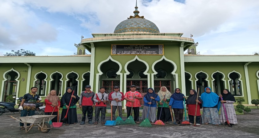 Sebanyak 25 ASN MTsN 2 Kepulauan Meranti dan MI Al-Khairiyah, termasuk pengurus Masjid Darul Muttaqin, mengikuti kegiatan GEBER BBM tahun ini. Mereka melaksanakan berbagai kegiatan, seperti menyapu halaman, membersihkan ruang utama ibadah, tempat wudu, serta lingkungan sekitar masjid.